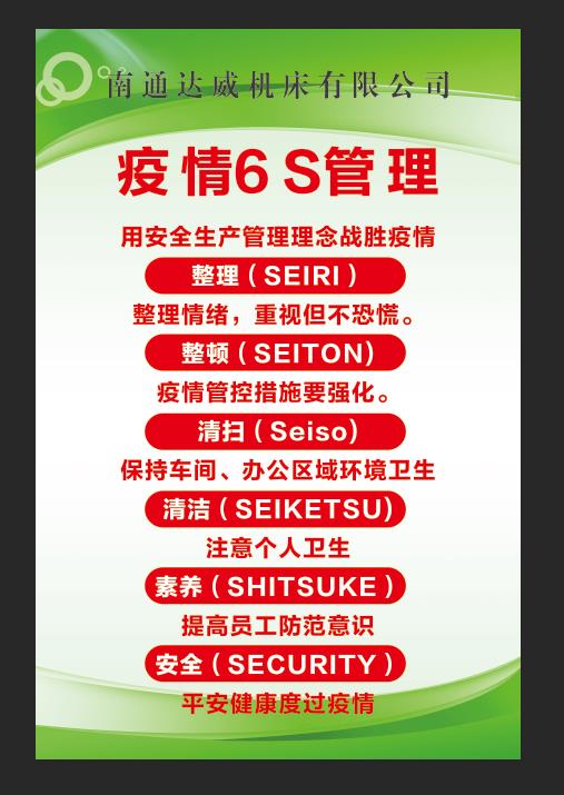 2月10日清晨7點(diǎn)剛過,達(dá)威老員工老吳早早地趕到了公司。“公司上班時(shí)間是7點(diǎn)半。這不復(fù)工第一天嘛!早一點(diǎn)來搞搞衛(wèi)生、做好消毒防疫工作,迎接大家復(fù)工!”老吳是南通達(dá)威機(jī)床有限公司的辦公室主任,辦公地點(diǎn)位于江蘇省南通市海安市李堡鎮(zhèn)工業(yè)園。