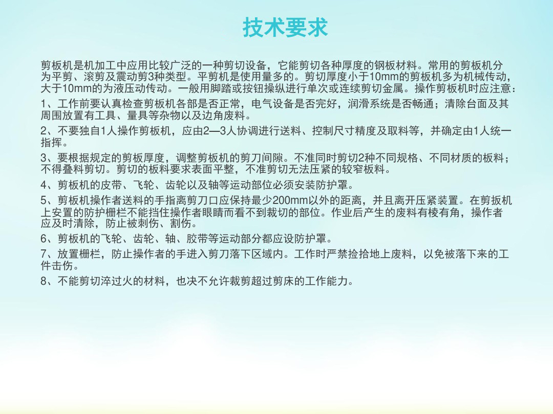剪板機(jī)技術(shù)要求